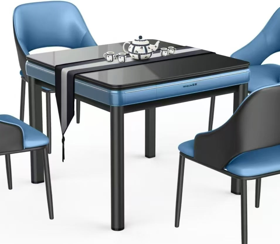 - 4-Legged Automatic Mahjong Table comes with 2 sets of magnetic tiles (1 Blue 1 Green). You can easily switch the modes on the table according to your preference.